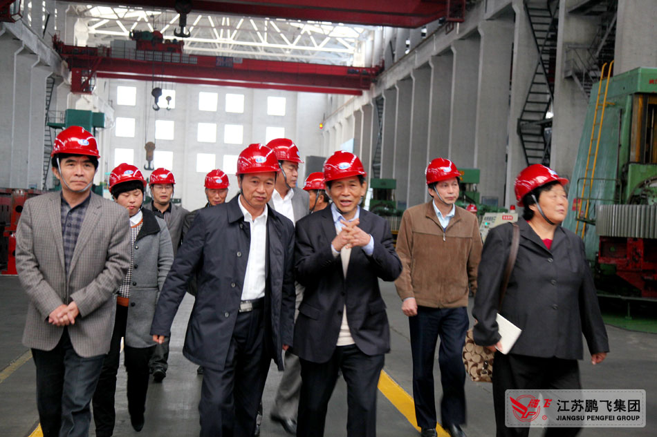 2014年11月25日,中國建材工業聯合會喬龍德會長到江蘇鵬飛集團現場考察,喬會長一行參觀了集團位于城北工業園的窯爐和節能粉磨設備生產現場、科技成果展廳,聽取了鵬飛集團董事長王家安關于落實全國建材系統工作會議精神和鵬飛集團轉型升級等方面的情況匯報。