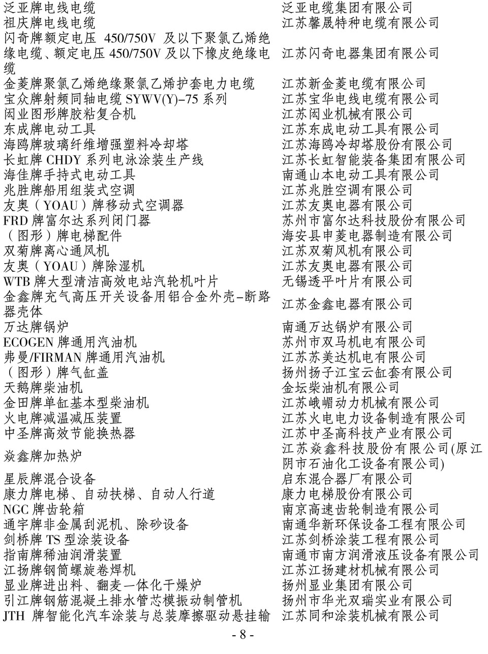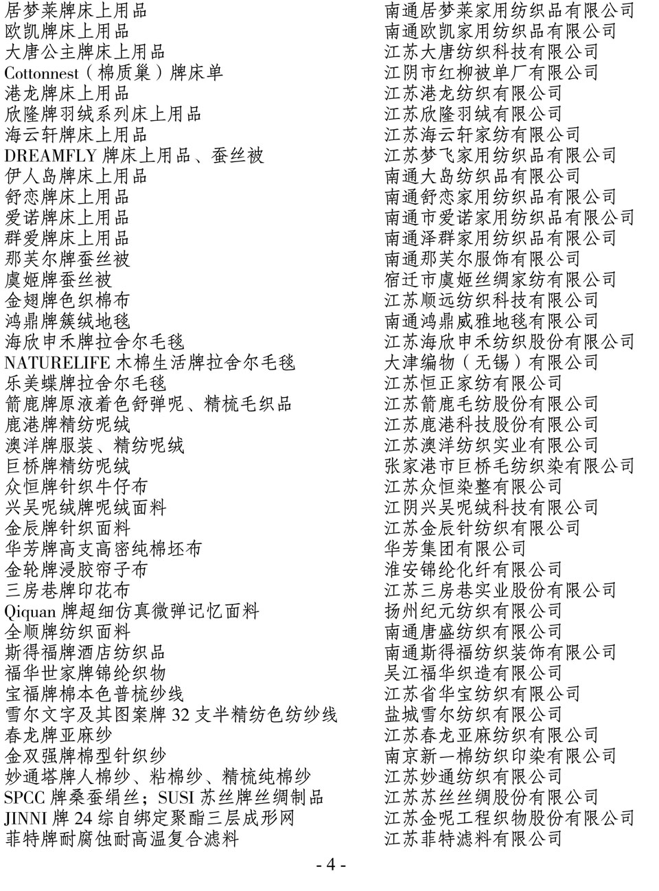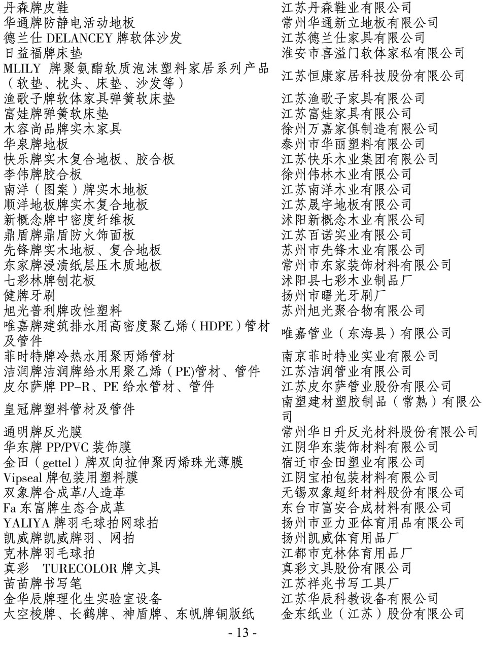 日前,江蘇省名牌戰略推進委員會公布了2014年江蘇省名牌產品名單,“