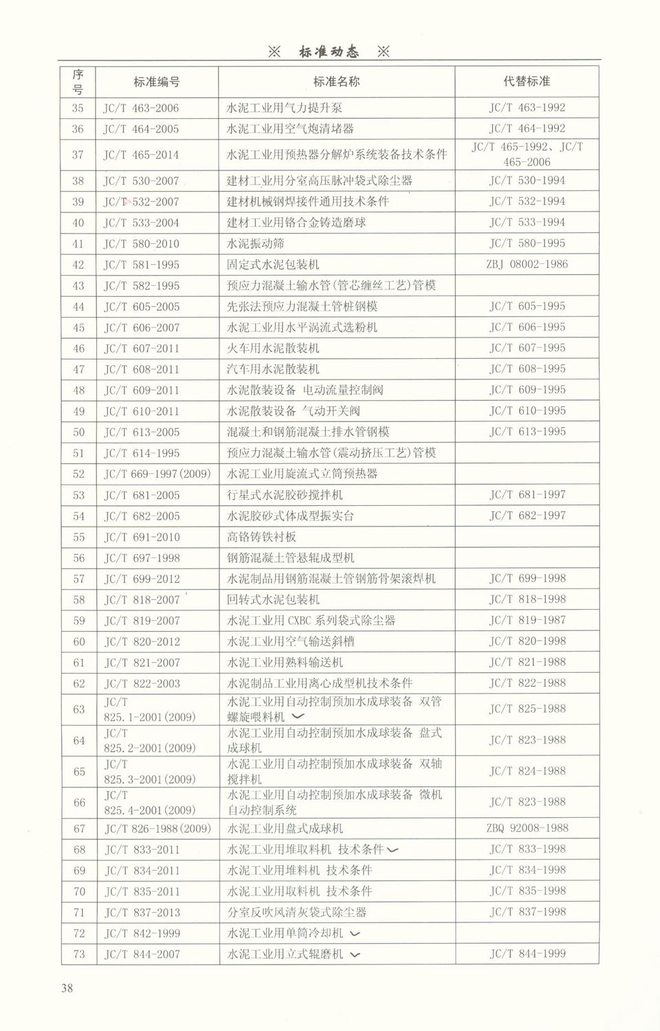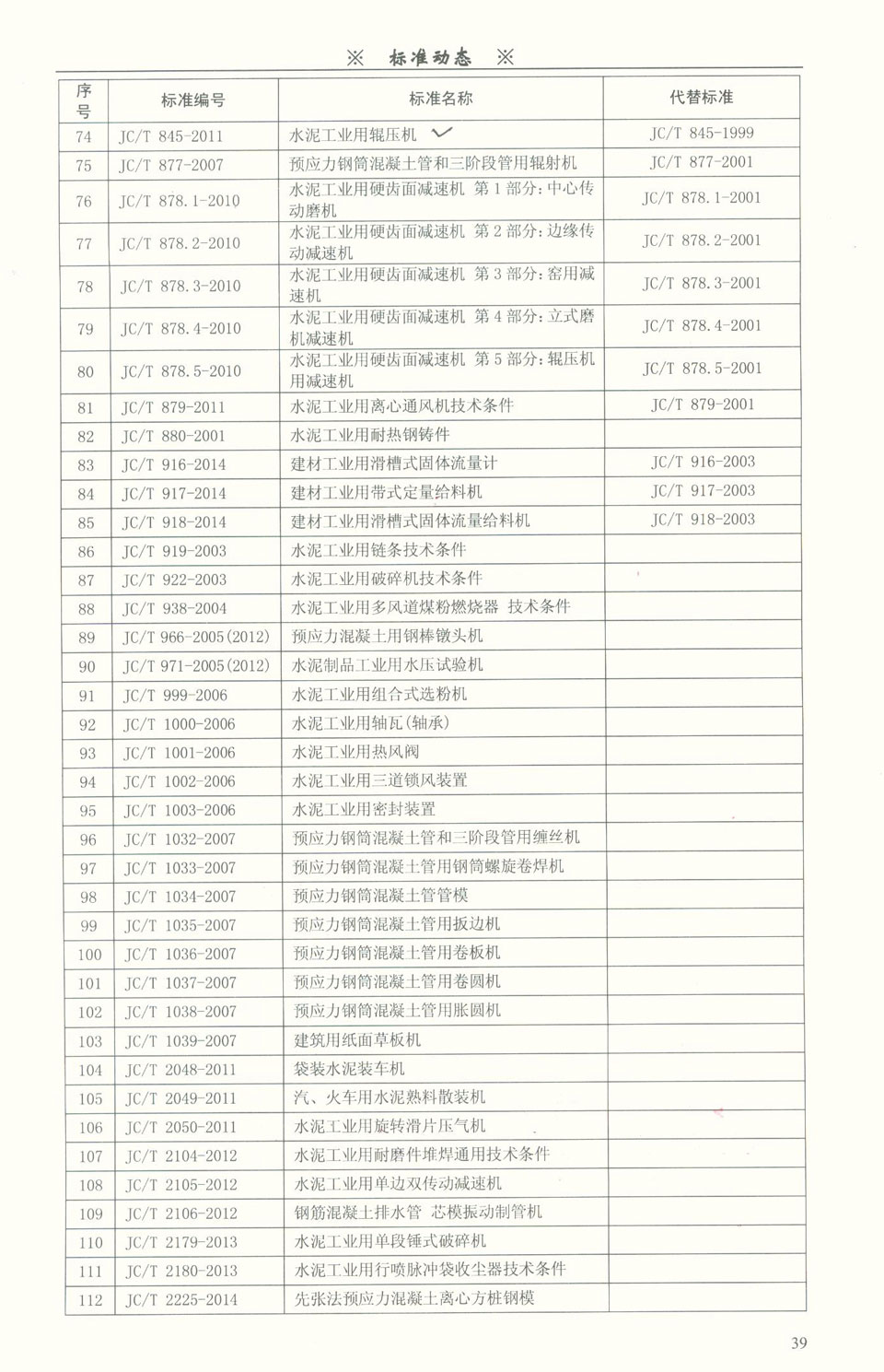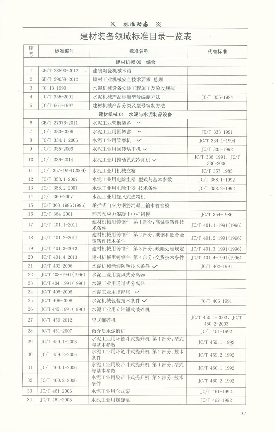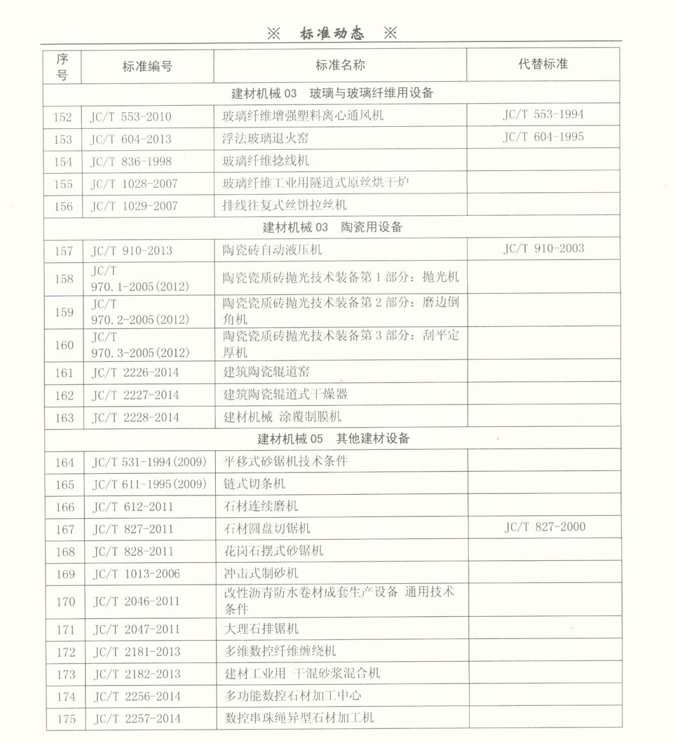 建材裝備領(lǐng)域標(biāo)準(zhǔn)目錄一覽表