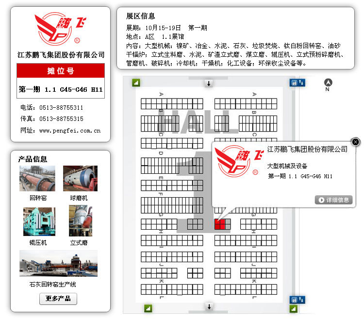 江蘇鵬飛集團(tuán)在廣交會上精心布置展位,印發(fā)各類設(shè)備的介紹手冊,整體模型展示水泥生產(chǎn)線產(chǎn)品,委派具有多年工作經(jīng)驗的銷售、技術(shù)、售后等專業(yè)工作人員為顧客詳細(xì)介紹新產(chǎn)品、新技術(shù),全面分析解答各類設(shè)備從購買到投產(chǎn)使用以及售后服務(wù)等每個環(huán)節(jié)的問題,為您排疑解難,與您達(dá)成共識。同時,也希望能和更多的國內(nèi)外公司加強(qiáng)聯(lián)系,互相合作,為客戶提供更加完美的產(chǎn)品。