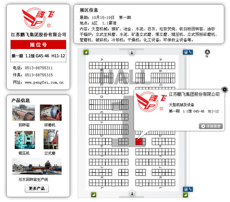 江蘇鵬飛集團在第118屆廣交會上精心布置展位,印發所產各類成套設備的介紹手冊,并運用全景水泥生產線模型現場演示,委派具有多年工作經驗的銷售、技術、售后等專業工作人員為顧客詳細介紹新產品、新技術,全面分析解答各類設備從購買到投產使用以及售后服務等每個環節的問題,為您排疑解難,與您達成共識。同時,也希望能和更多的國內外公司加強聯系,互相合作,為客戶提供更加完美的產品。