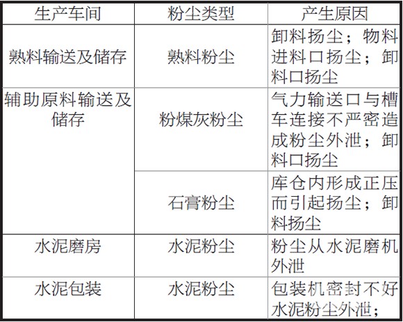 表1 水泥粉磨站粉塵污染來源統計表