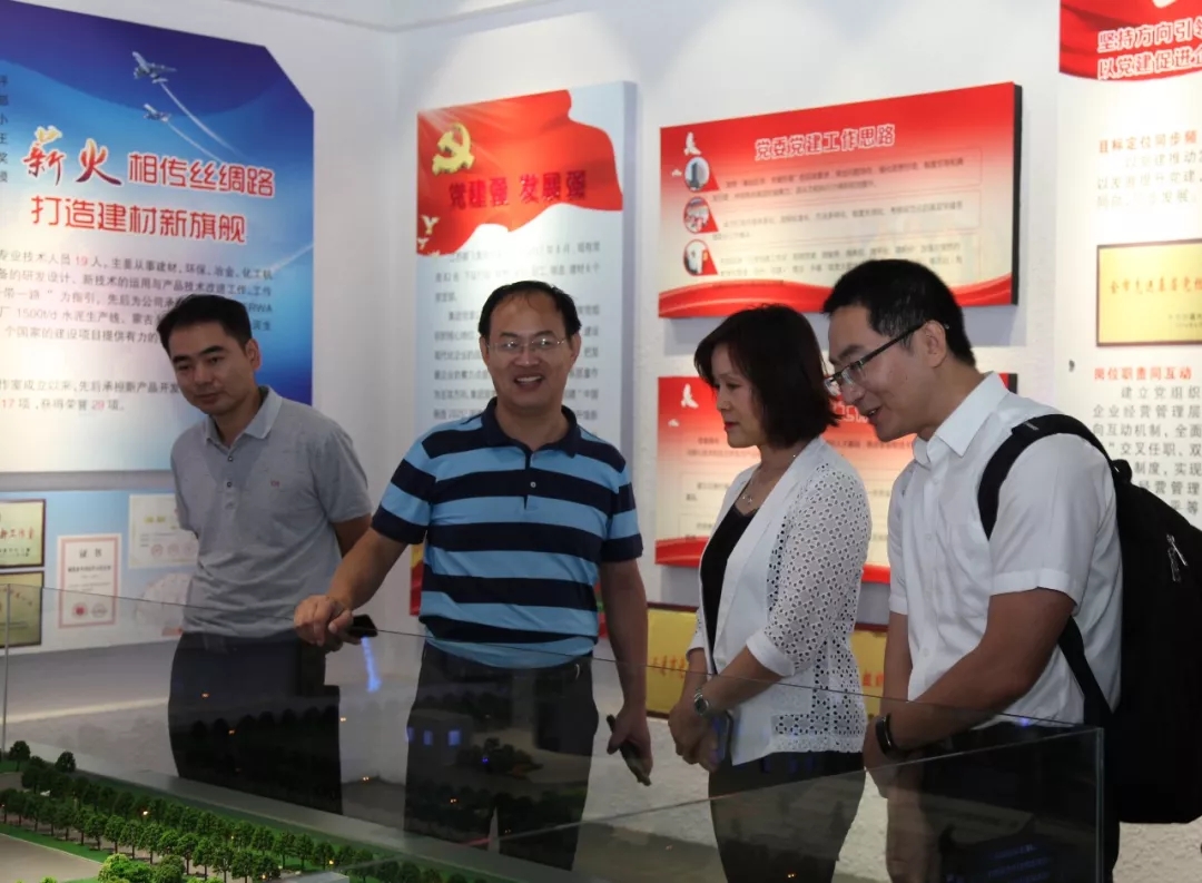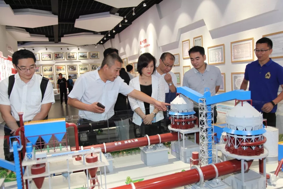 董事長王家安陪同全國建材裝備標準化技術委員會秘書長王玉敏參觀鵬飛集團展示廳