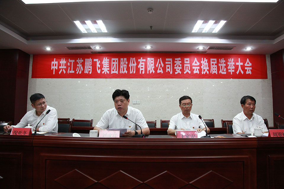 8月28日,中國共產黨江蘇鵬飛集團委員會換屆選舉大會在鵬飛集團科技大廈三樓會議室隆重召開。鵬飛集團行政支部、銷售支部、建材支部、鑄造支部、金加工支部、總裝支部黨組織的76名代表出席會議。海安市委常委、組織部長、統戰部長張明星,大公鎮黨委書記劉成亮等領導出席會議。會議由鵬飛集團紀委書記周銀標同志主持。