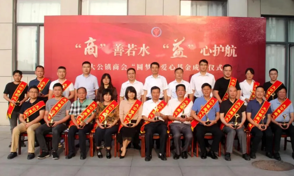 鵬飛集團(tuán)王家安董事長為大公鎮(zhèn)商會(huì)圓夢愛心基金會(huì)揭牌
