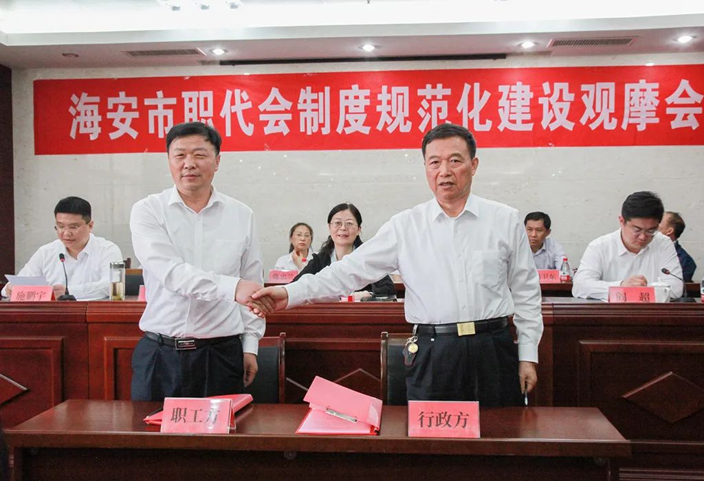 鵬飛集團職代會制度建設規范,以職代會為基本形式的基層民主管理制度體系健全程度名列前茅。借此契機,海安市總工會在鵬飛集團召開海安市職代會制度規范化建設觀摩會,來自全市40余名基層工會干部參加觀摩。