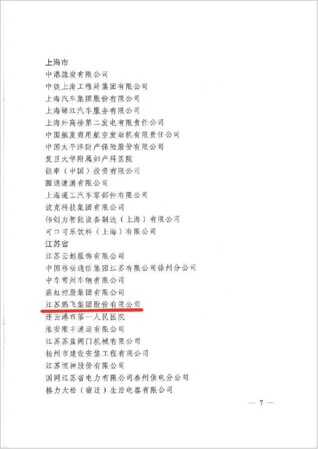 近日,全國廠務公開協調小組印發《關于表彰2021-2023年全國廠務公開民主管理工作先進單位的決定》,江蘇鵬飛集團股份有限公司被表彰為全國廠務公開民主管理工作先進單位。