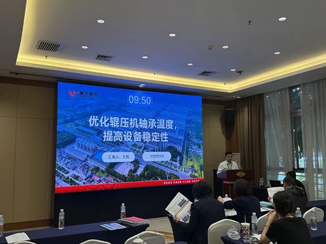 鵬飛集團輥壓機QC小組發(fā)表成果《優(yōu)化輥壓機軸承溫度,提高設(shè)備穩(wěn)定性》。輥壓機QC小組圍繞輥壓機軸承溫度高、冷卻水流量不穩(wěn)定等問題,通過優(yōu)化冷卻水路和潤滑系統(tǒng),規(guī)范安裝工藝。改進后軸承溫度降至50℃以內(nèi),設(shè)備綜合效率提高7%,壽命延長20%,顯著提升設(shè)備穩(wěn)定性,降低了能耗。