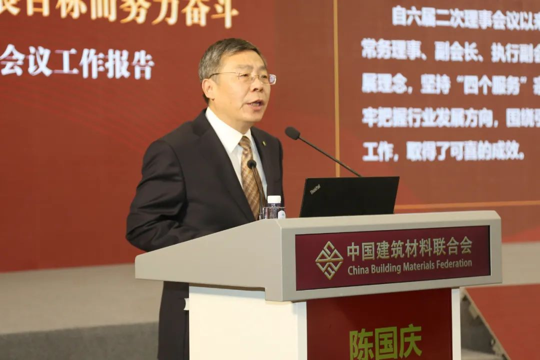 受會長閻曉峰委托,陳國慶代表中國建筑材料聯(lián)合會六屆理事會作題為《堅(jiān)持綠色低碳安全高質(zhì)量發(fā)展 堅(jiān)持“四個(gè)服務(wù)”工作定位 為實(shí)現(xiàn)“宜業(yè)尚品、造福人類”行業(yè)發(fā)展目標(biāo)而努力奮斗》的工作報(bào)告。報(bào)告回顧了聯(lián)合會近一年來的工作情況,分析了面臨的形勢任務(wù),提出了下一步工作思路舉措。