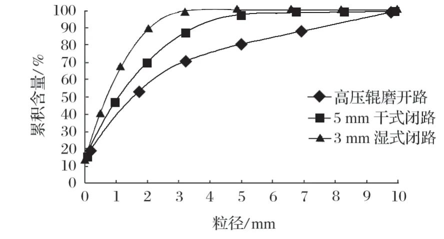 圖4 不同高壓輥磨工藝流程產品粒度曲線