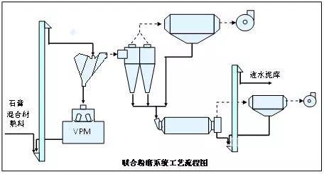 此工藝主要應用于立磨與球磨機功率比小于0.4的場合,主要優點是系統簡單,設備少,運轉率高,系統投資少;采用此工藝,相對于單球磨機系統,系統產量最大可以增產50%以上,單位電耗下降15%~20%左右。