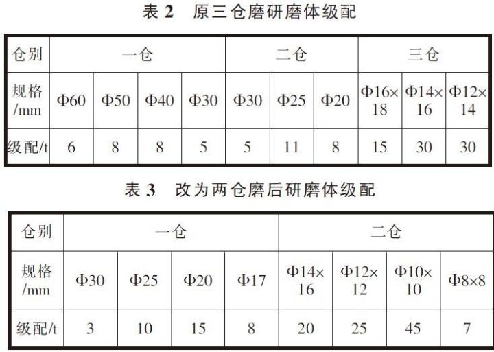 2 球磨機(jī)磨內(nèi)改造和級配調(diào)整