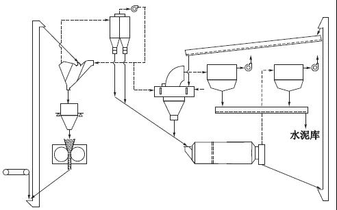 4)增加空氣輸送斜槽,將細粉分離器選出的水泥成品匯入該斜槽,經提升機入水泥庫。