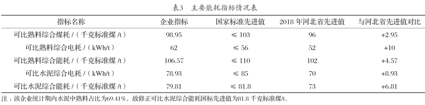 主要能耗指標情況具體如表3所示。