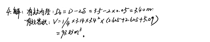 4、已知某φ3.5m磨機襯板的厚度為0.05m,一倉長2.625m,二倉2.3625m,三倉5.09m,求該磨機的有效內徑和有效容積。