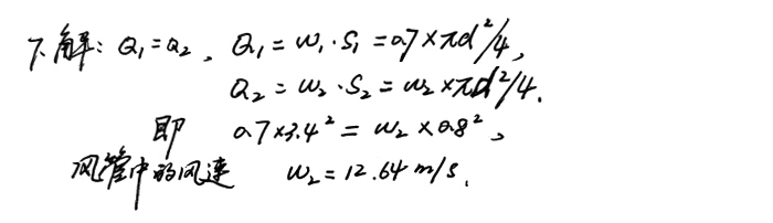 7、磨機有效直徑3.4m,測其風速為0.7m/s,假設磨尾無漏風,磨尾風管直徑為800mm,求風管中風速。