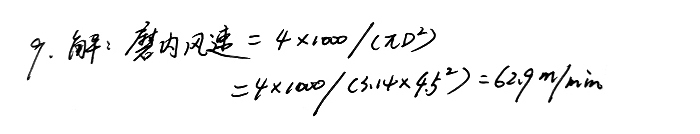 9、某廠水泥磨的通風量為1000m3/min,磨機規格為φ4.5*15m,試計算磨內的風速大約是多少?